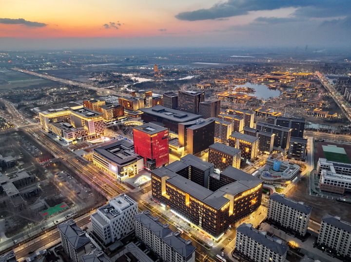 ??雄安商务服务中心夜景(2025年3月15日摄,无人机照片)。新华社记者 牟宇 摄