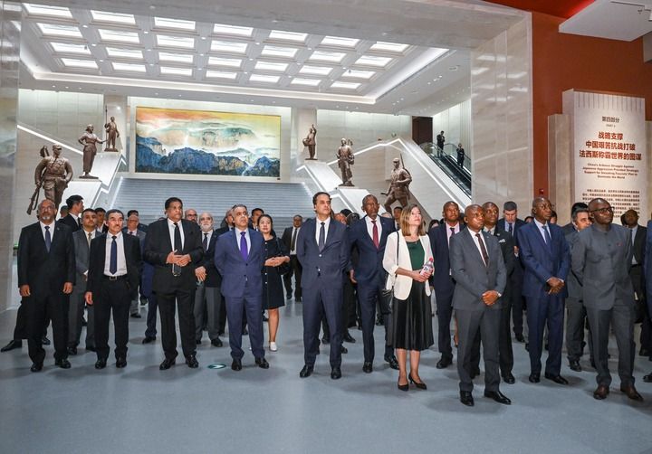 ??驻华外交官来到中国人民抗日战争纪念馆,参观纪念中国人民抗日战争暨世界反法西斯战争胜利80周年主题展览《为了民族解放与世界和平》(2025年7月17日摄)。新华社记者 陈晔华 摄