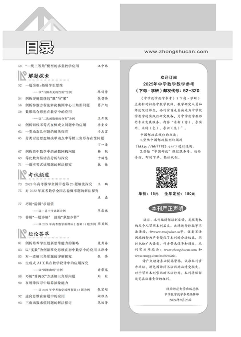 中学数学教学参考公众号
